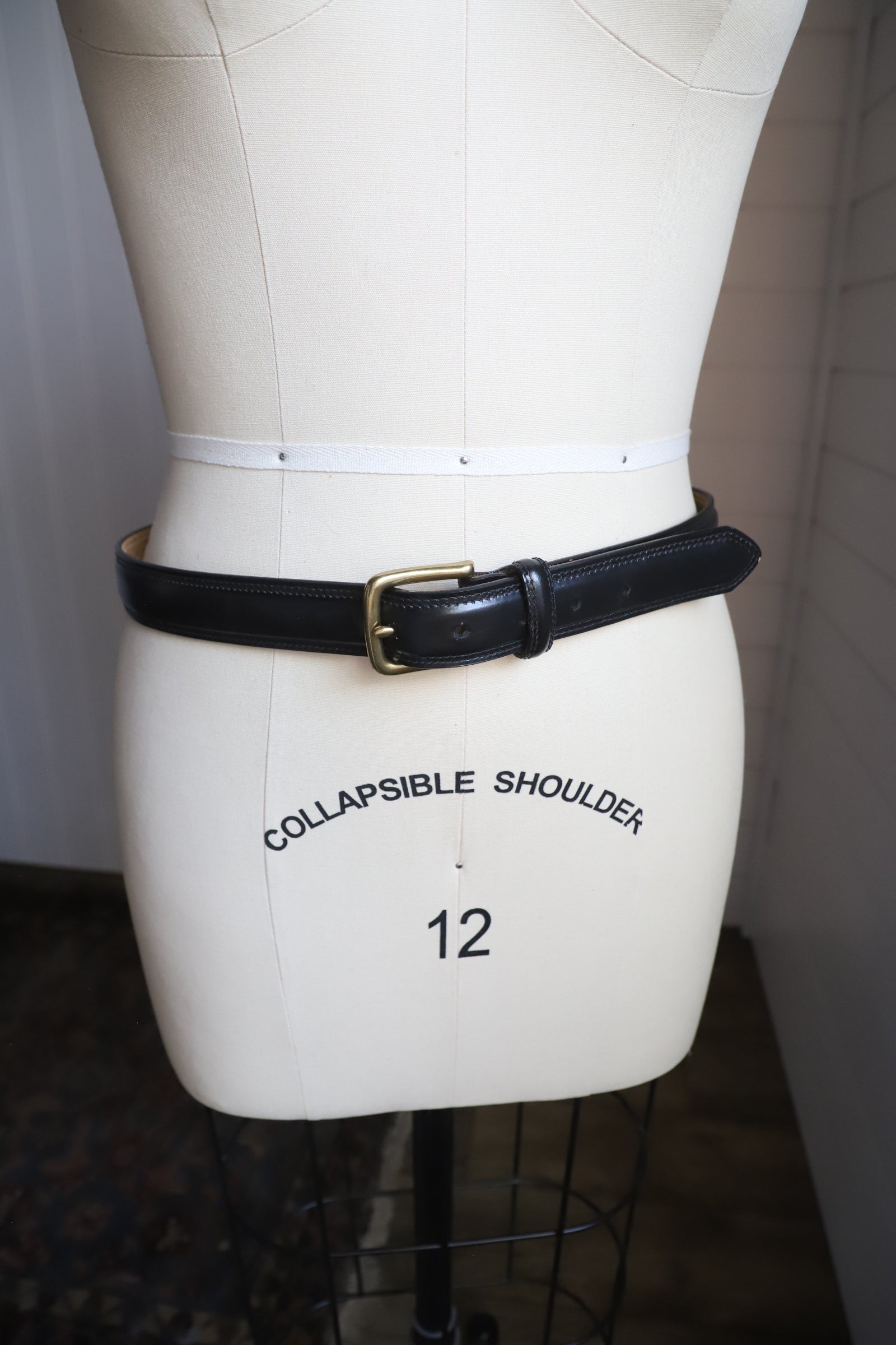Lovely black leather Canterbury belt with a solid brass buckle. This is nearly new or like new condition. Made of Latigo leather.