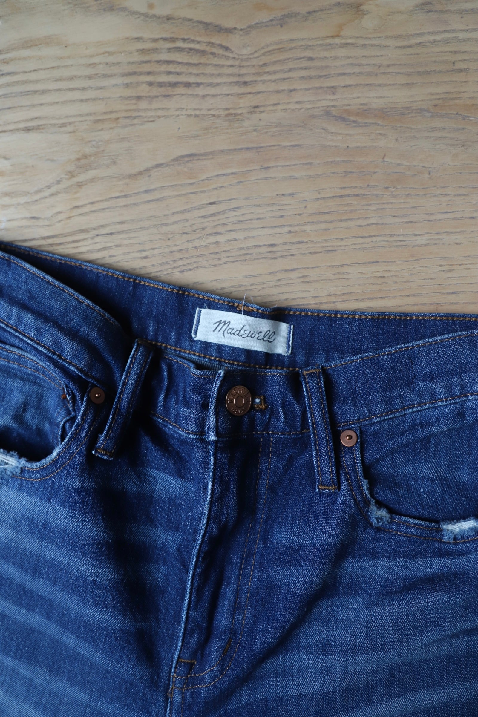 Madewell The Slim Boy Jean. Washed and ready to wear. Such a good mid to dark wash. 98% cotton 2% elastic.