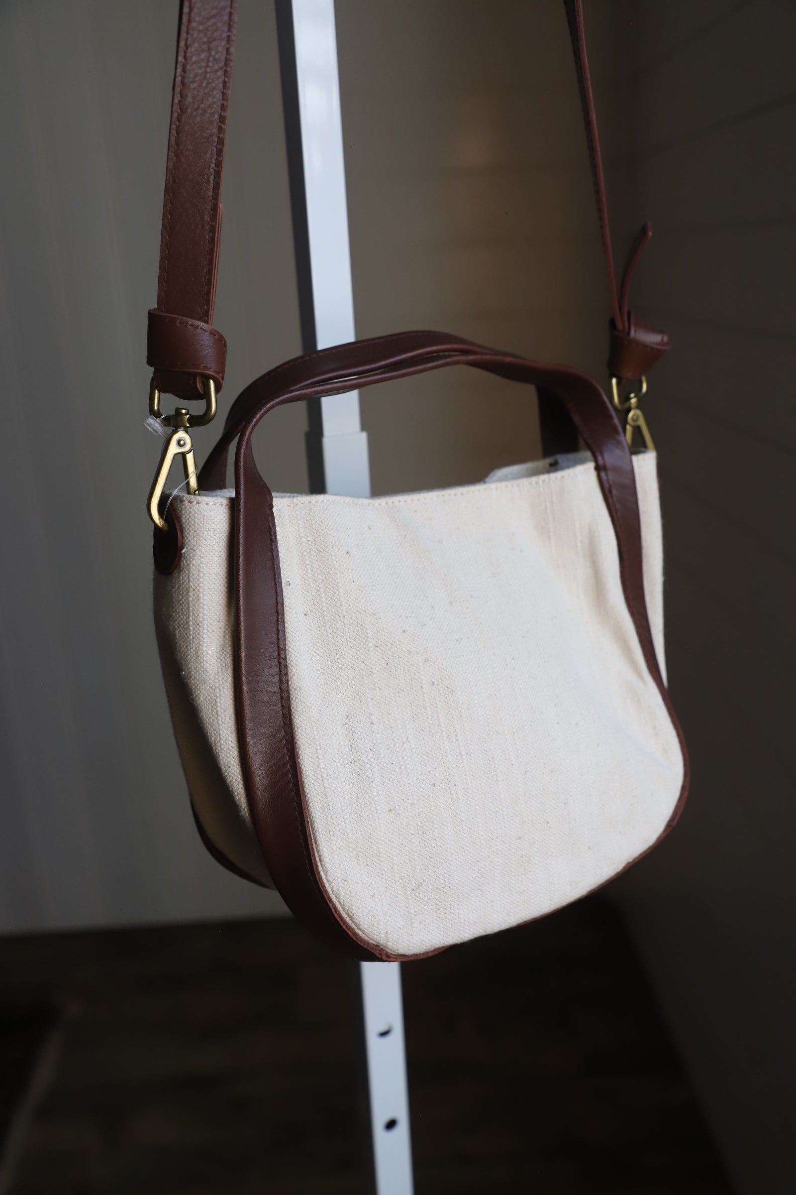 Gorgeous cotton and real leather Madewell bag. Strap can be removed for the cutest little handbag. Cream with a dark hazelnut leather. Outer is 63% cotton 25% viscose 12% linen and the leather is 100% cow leather. Lined in 100% cotton. Magnetic closure. Retails for $128.