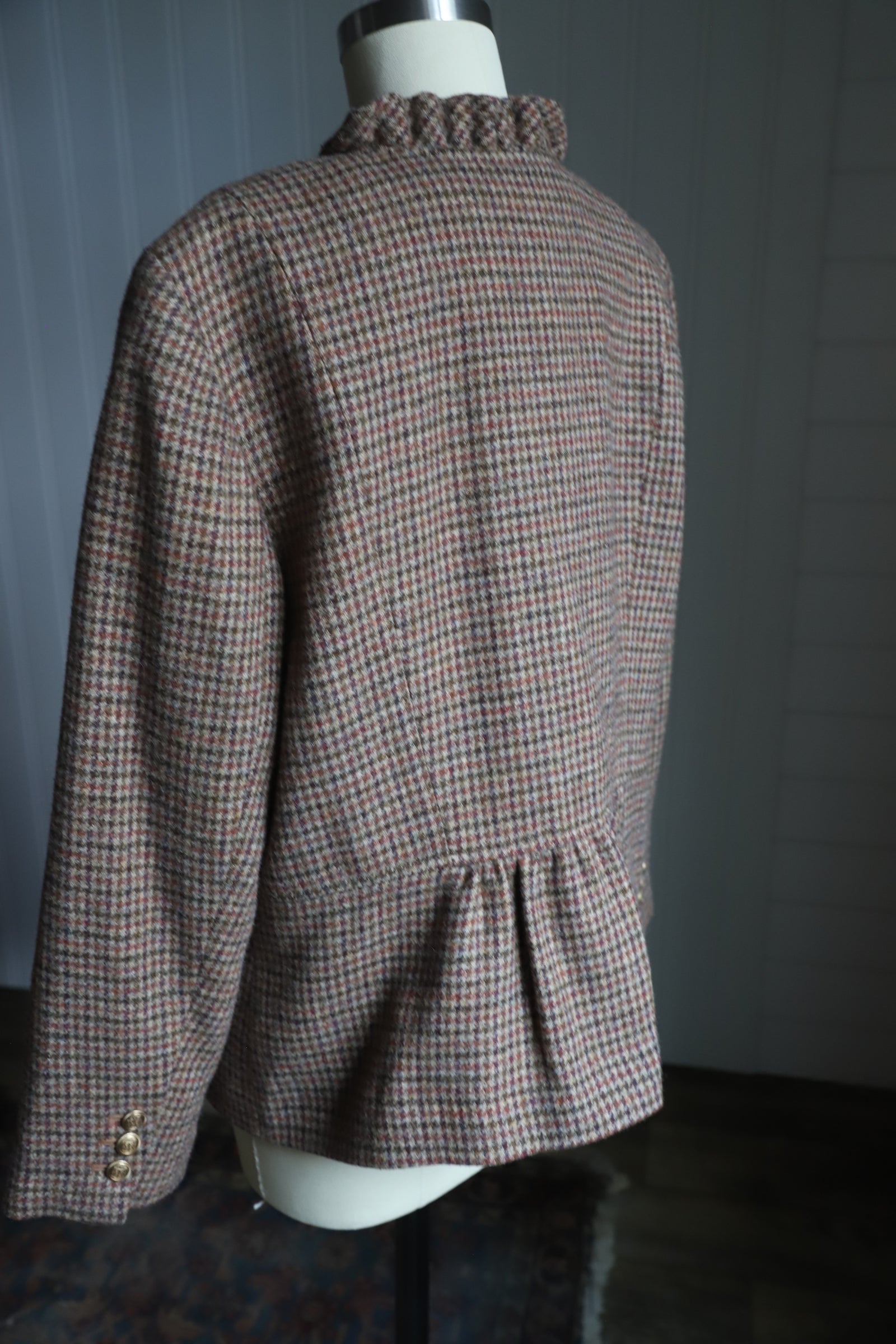 Absolutely gorgeous tweed Talbots Petites blazer. The style and fit of this is incredible. 48% wool 27% polyester 25% viscose lined in 100% poly. Good embellished buttons. Overall excellent condition.