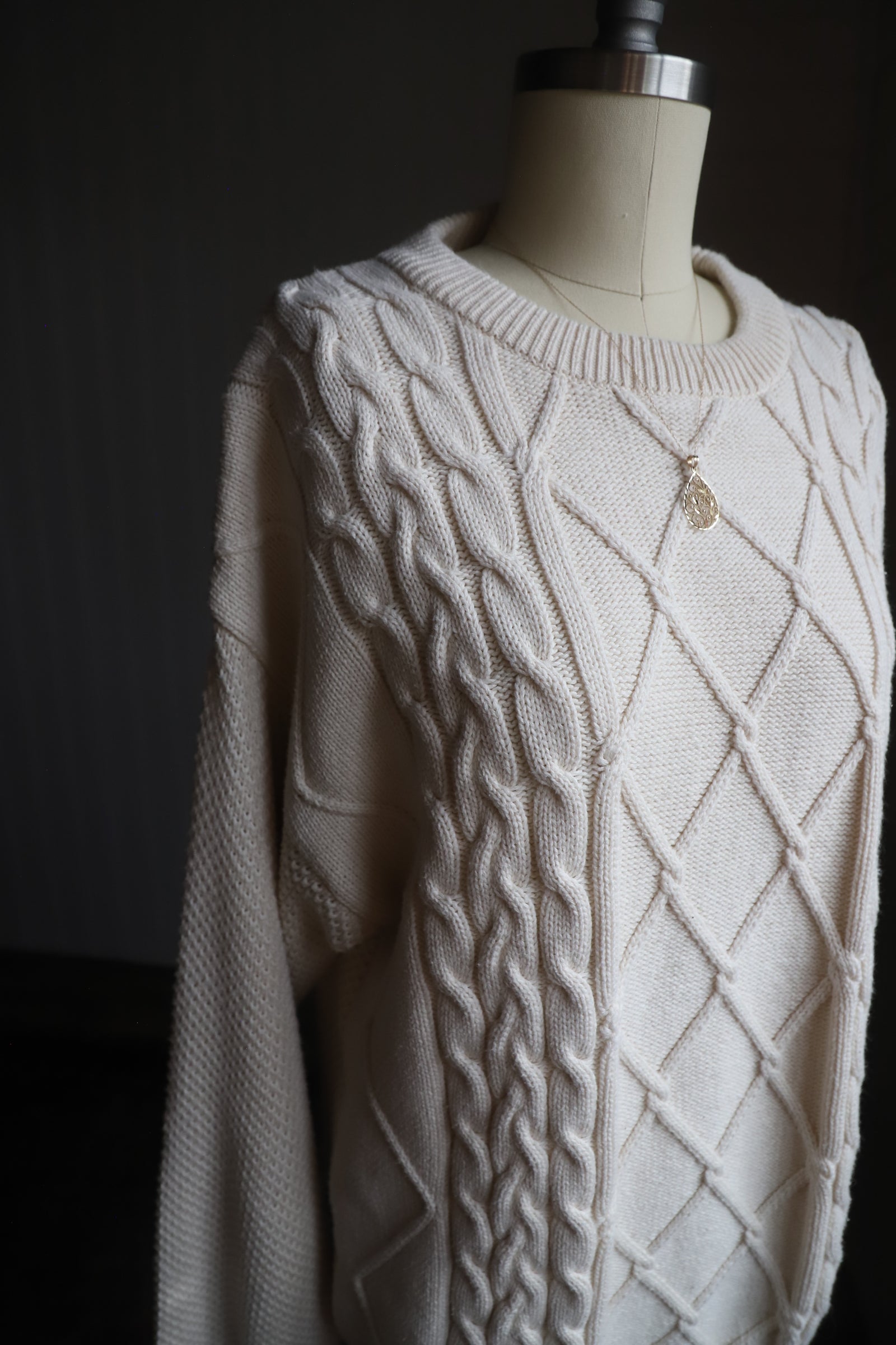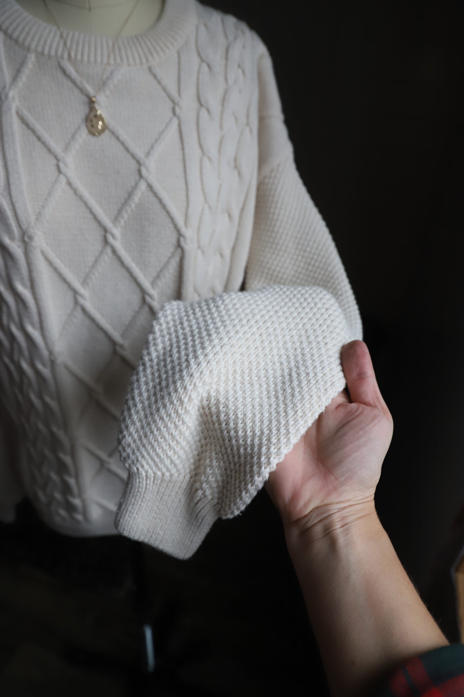 Vintage cable knit 100% cotton sweater (see description for sizing)