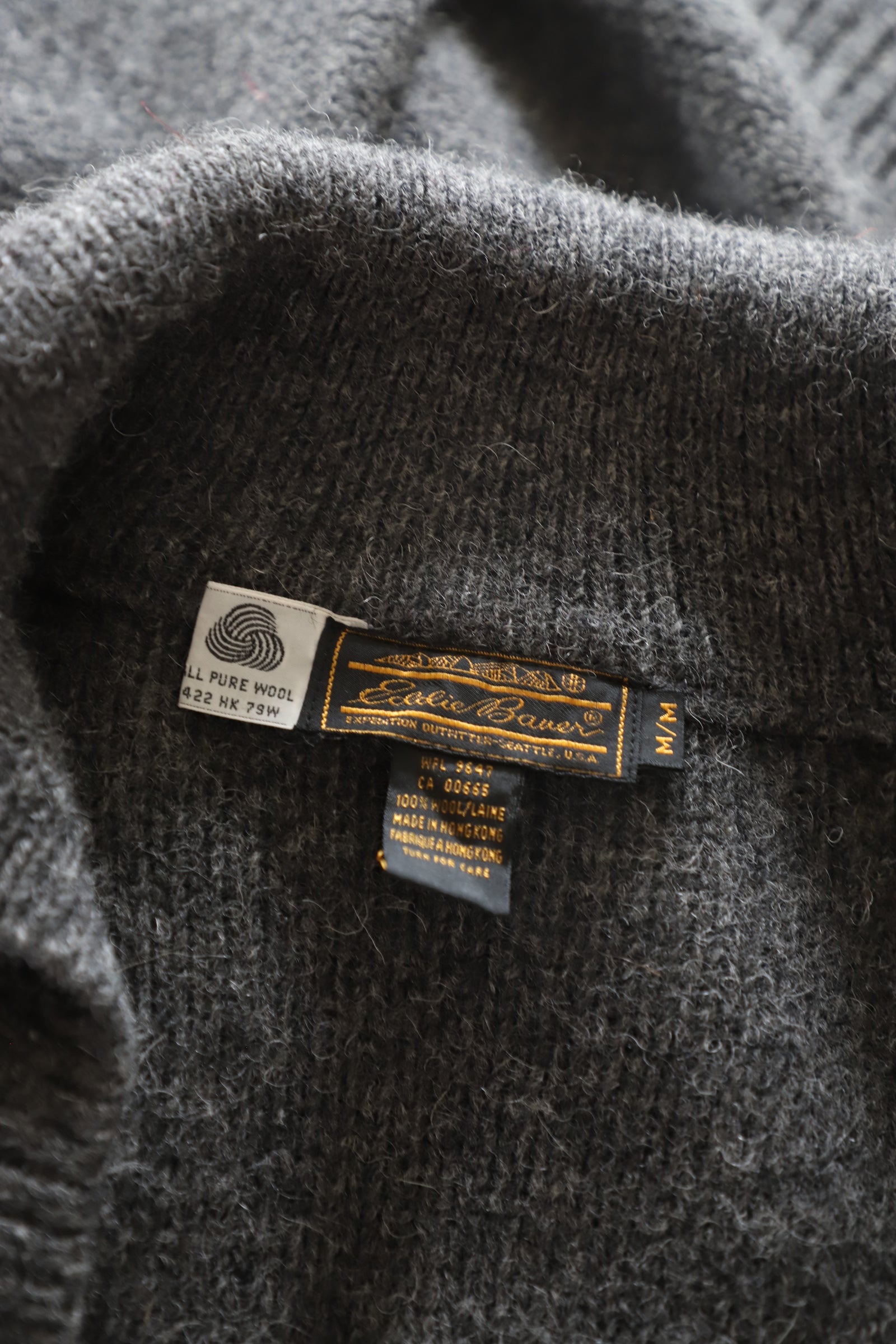 Beautiful vintage Eddie Bauer charcoal grey 100% pure wool sweater with beautiful brown buttons. Washed and ready to wear which did bring a bit of a wool swell out.
