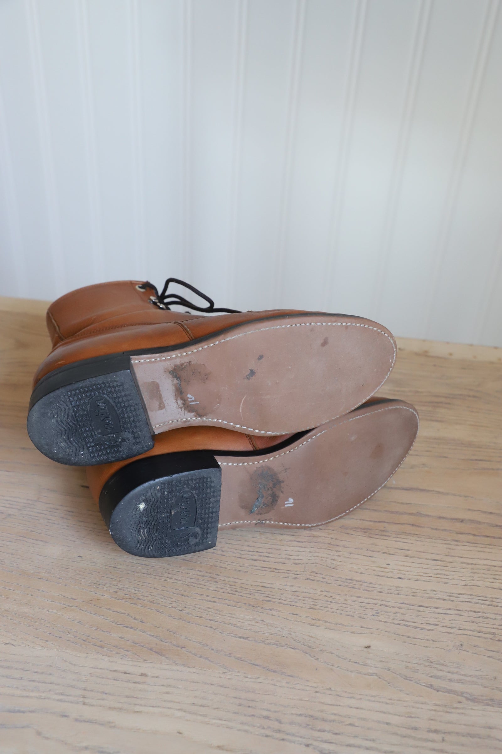 Vintage all leather Justin boots. Made in Mexico of incredible, cognac leather. These have been cleaned and conditioned. Overall excellent condition for their wear and age.