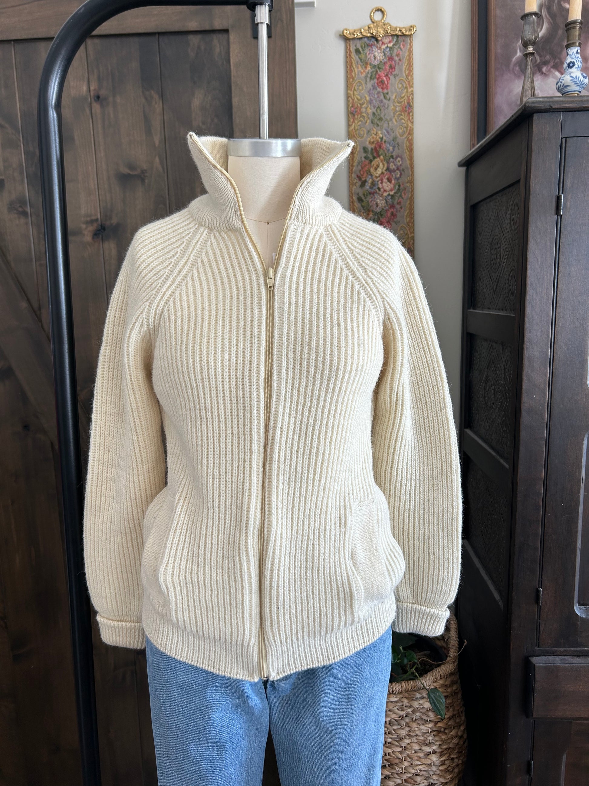 Absolutely incredible vintage LLBean Made in England 100% wool sweater. 100% pure British wool. Washed and ready to wear. In incredible condition for its age. LLBean made their English sweaters in the 1970’s. This sweater has stood the test of time. This is a cream color. Timeless. This does have a wool feel, may be best to layer.