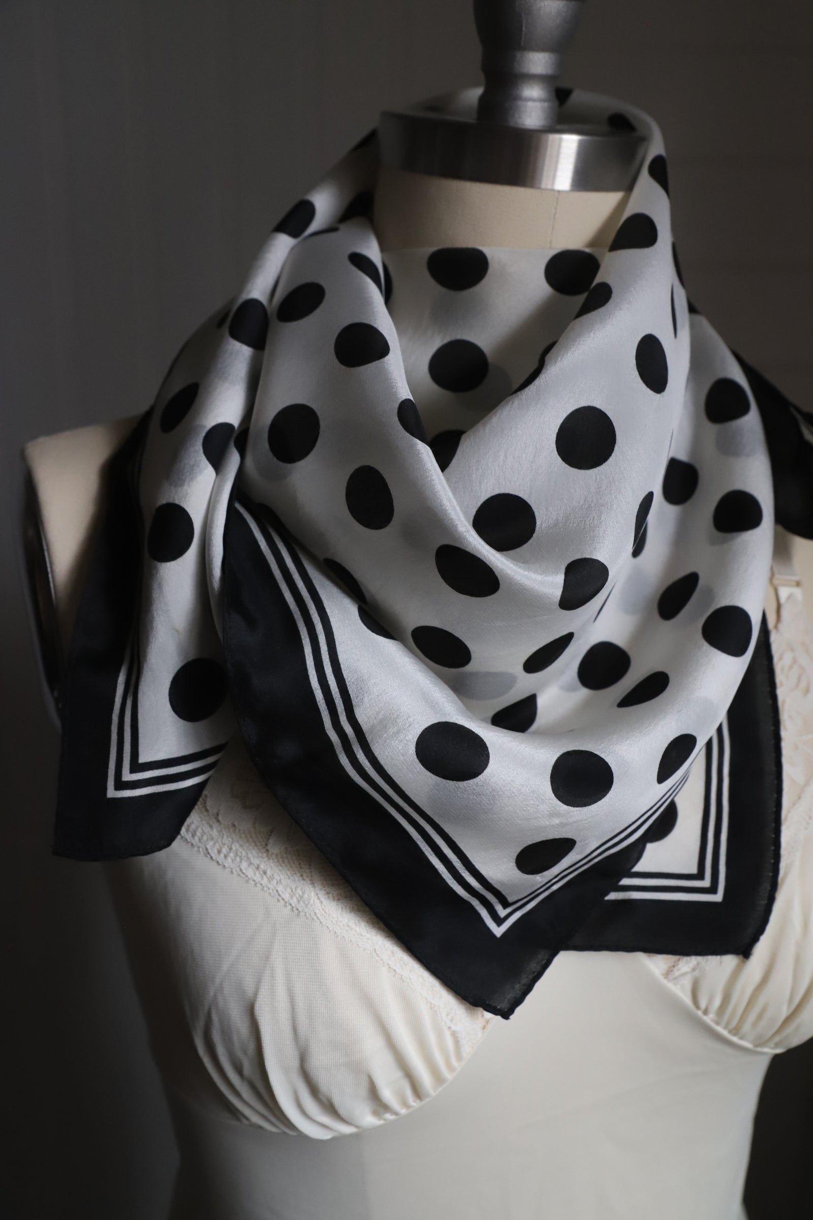 Vintage polkadot silk scarf