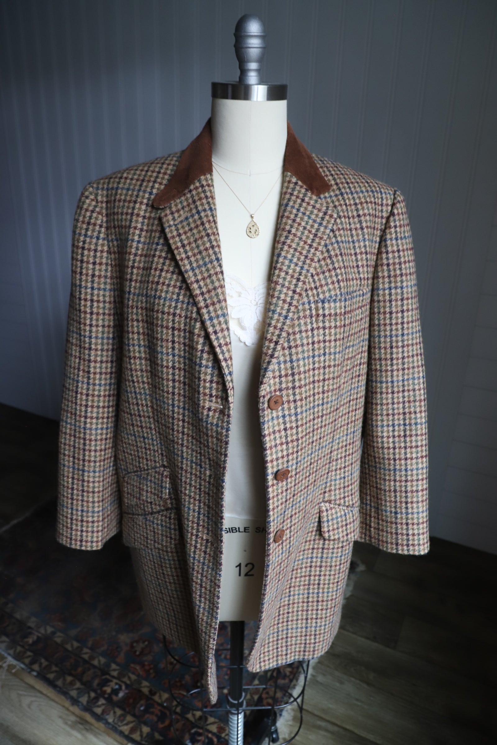 Beautiful vintage Lauren Ralph Lauren tweed blazer. 100% pure new wool, made in the Phillippines. Tans with a bit of maroon and blue. STUNNING! Timeless style and coloring. I love the pocket placement. This is a longer style blazer and does have petite sleeves. Can work on someone not petite, they’ll just be more cropped.