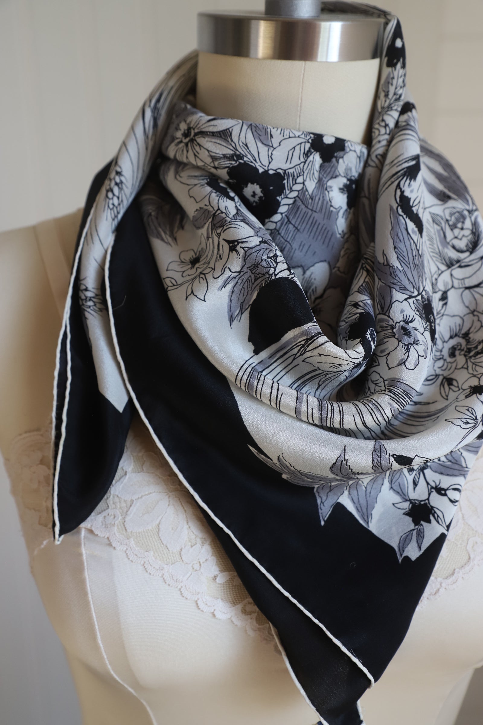 Beautiful vintage Sally Gee 100% silk scarf with hand rolled edges. This has some minor wear but overall excellent condition. Has a little bit of an older smell but I did treat with a vodka spray.