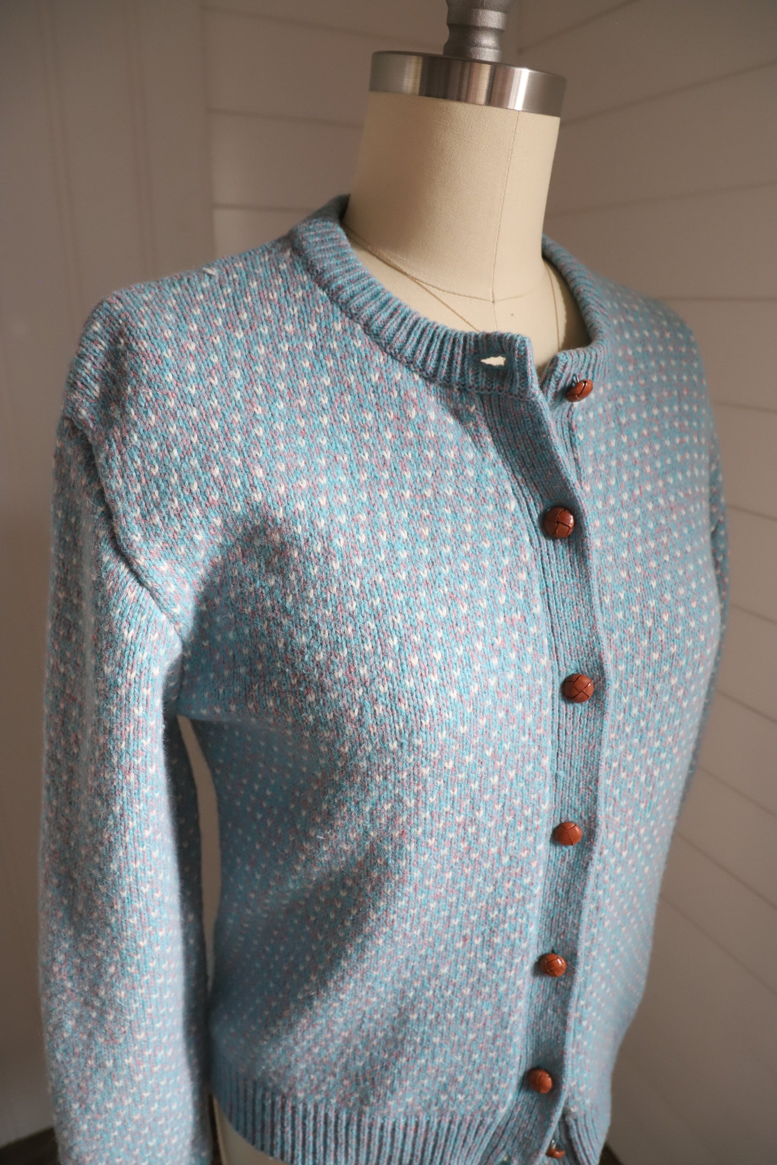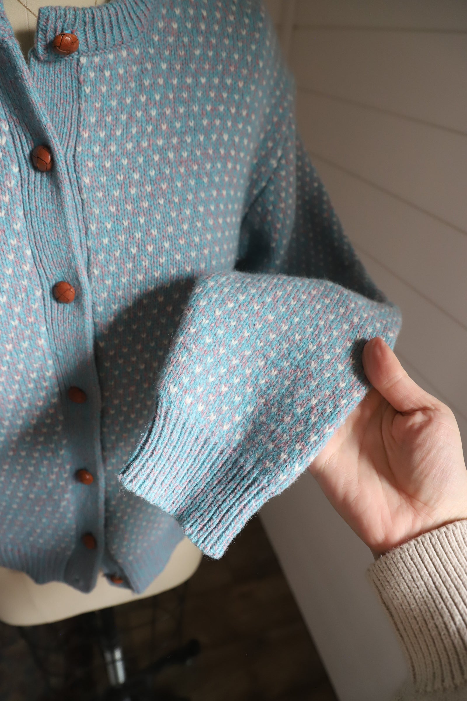 Stunning Woolrich wool blend sweater. 85% wool 15% nylon. Made in Hong Kong. Lovely leather covered buttons. Washed and ready to wear in excellent condition.